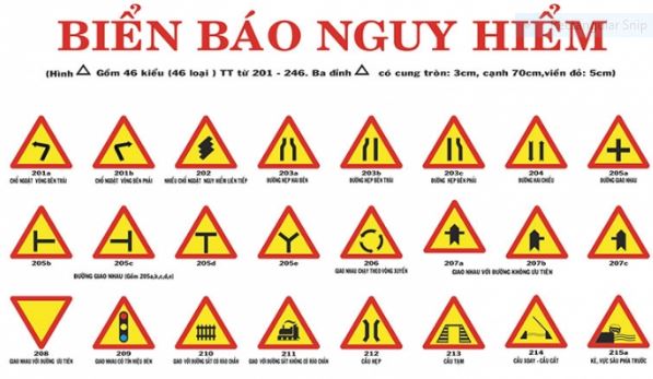 Nhóm này gồm 46 biển, số thứ tự từ 201 đến 246, cảnh báo người đi đường về những nguy hiểm có thể xảy ra, giúp phòng tránh xảy ra tai nạn.