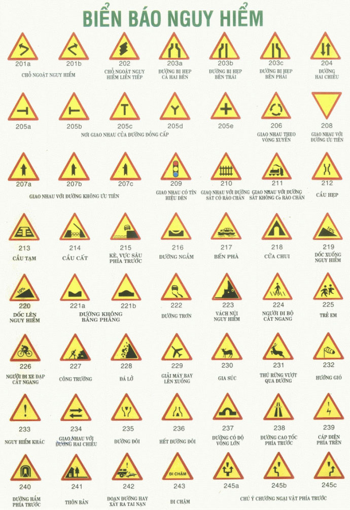 | Các loại biển báo nguy hiểm |