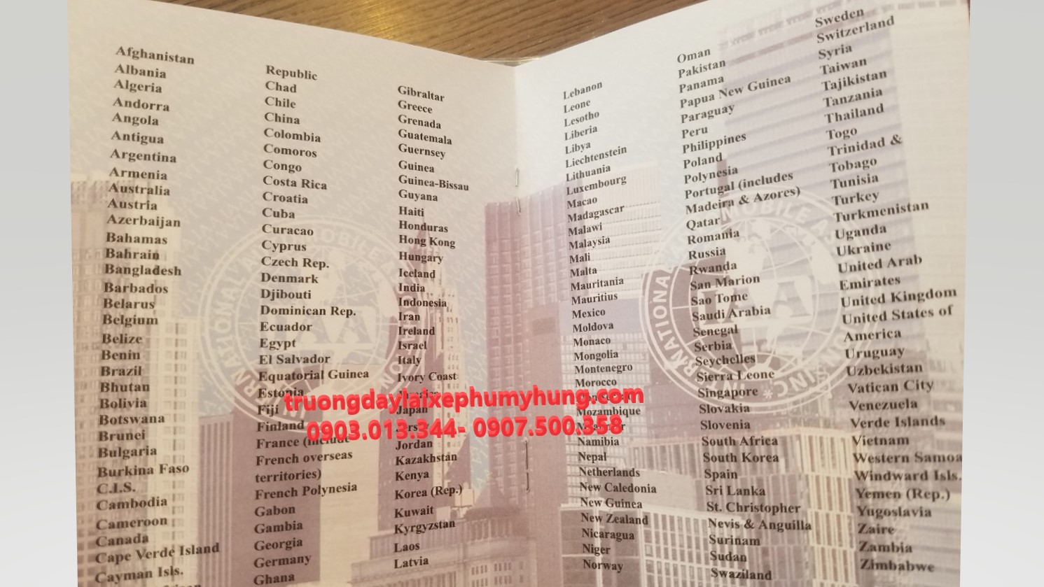 TRƯỜNG LÁI XE PHÚ MỸ HƯNG CUNG CẤP DỊCH VỤ CHUYỂN ĐỔI BẰNG LÁI XE QUỐC TẾ DO MỸ CẤP - HẠN SỬ DỤNG 20 NĂM- ĐI ĐƯỢC 192 QUỐC GIA