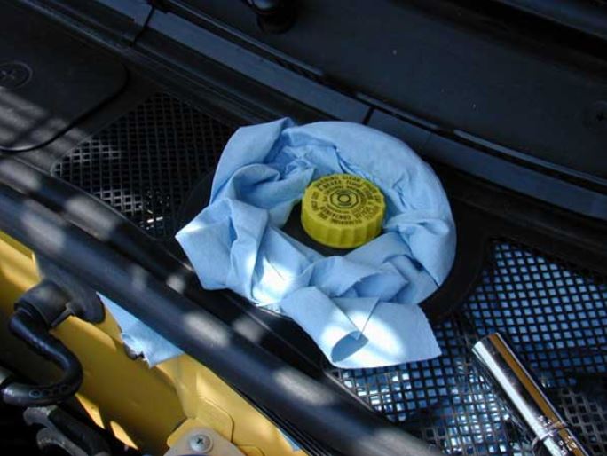 Chú ý: Trước khi châm dầu vào hộp, cần phải lau sạch miệng chai nhớt để những chất dơ bẩn không len vào trong hệ thống. Ðồng thời, cố tránh đừng để cho dầu thắng nhỏ xuống thành xe, nhất là những chỗ có sơn, bởi vì dầu thắng làm hư nước sơn ở body xe.