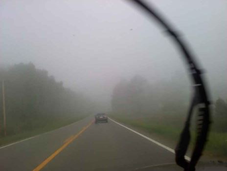 Sương mù làm giảm tầm nhìn và có thể nguy hiểm nếu tầm nhìn bị hạn chế lớn, lời khuyên tốt nhất cho bạn là đừng lái, nếu phải lái thì nên bật cả đèn cốt, đèn định vị, đèn sương mù.